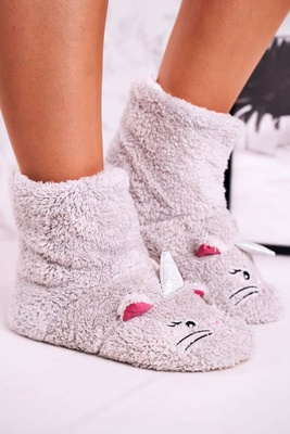 Moteriškos kailinės šlepetės su mažomis ausytėmis pilkas begemotas