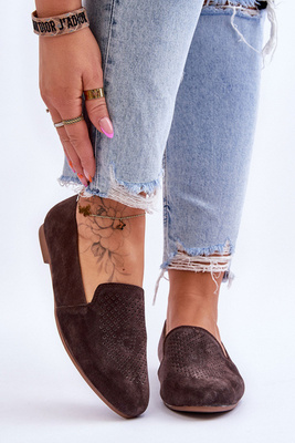 Zomšiniai loaferiai su ornamentu Ruda Eleina