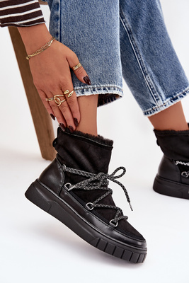 Moteriški žiemos batai su raišteliais Juodi Isalisse
