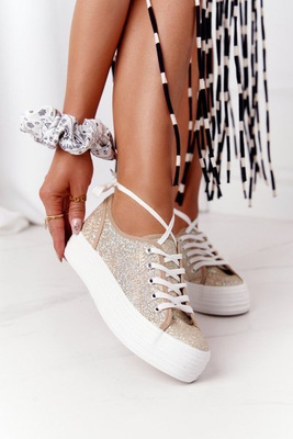 +1Blizgantys sportbačiai ant platformos Gold Luna