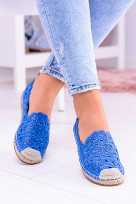 +5Lu Boo moterų balerinos balerinos tamsiai mėlynos espadrilės su Macarena gėlėmis