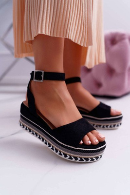 Moteriški plokšti užsegami cirkonio sandalai, juodi Mabellena