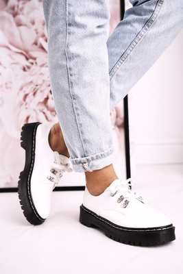 +1Moteriškos klasikinės Oxfords Brogues ant platformos S.Barski HX62 Baltos spalvos