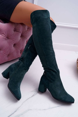 Moteriški aukštakulniai batai iki kelių, ekologiškos zomšos kupranugarių indigo