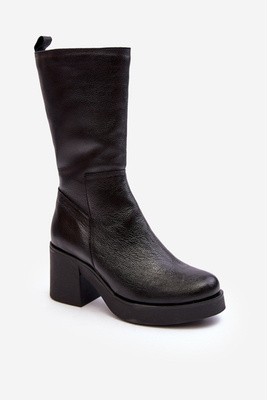 Moteriški batai su pamušalu su blokiniu kulnu, juoda Genzani
