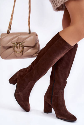 Moteriški zomšiniai batai virš kelių rudi Lewski 3367