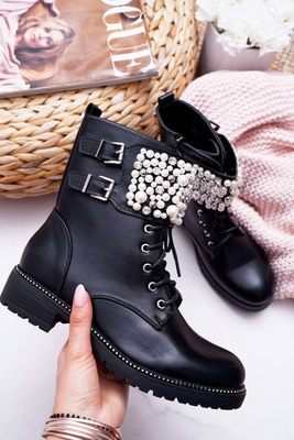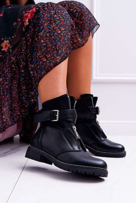 Moteriški batai su plokščiu kulnu Military Black Travist
