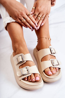 Odinės moteriškos šlepetės Nicole 2735 Beige