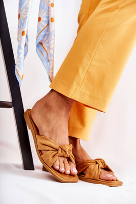 Moteriškos odinės šlepetės su skiautiniu Tamsiai smėlio spalvos Raula
