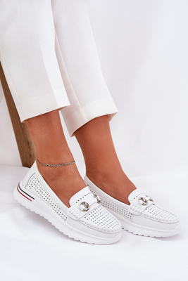 Iš natūralios odos perforuoti balerinos Vinceza 95331 baltos