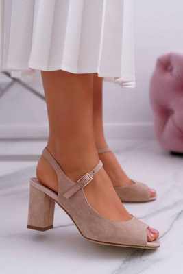 Moteriški elegantiški smėlio spalvos vidurio sandalai ant inkarų