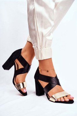 Elegantiški užsegami sandalai ant kulno juodos-auksinės spalvos Varina