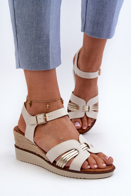 +1Moteriški odiniai pleištiniai sandalai Maciejka 06657-25 auksiniai