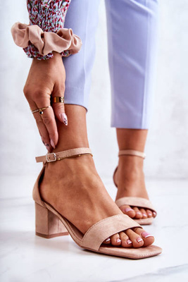 Zomšiniai moteriški sandalai ant kulno smėlio spalvos Luciana