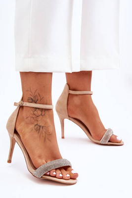 Zomšiniai aukštakulniai sandalai su krištoliniais smėlio spalvos momentais