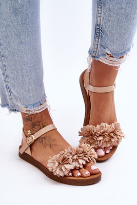 Moteriški sandalai su tekstilinėmis gėlėmis Beige Fiori