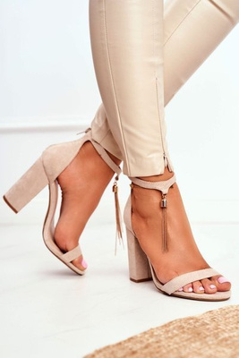 Zomšiniai sandalai su aukštakulniais smėlio spalvos Liberty