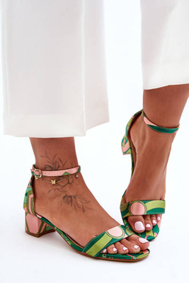 Dekoruoti sandalai su kulnais Tamsiai žalios spalvos SBarski MR1037-16
