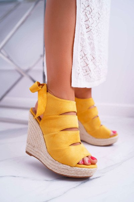 Moteriški sandalai ant inkaro lino, surišti geltona cantare