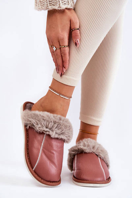Moteriškos izoliuotos šlepetės su kailiu rausvu Leriss