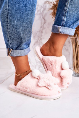 Moteriškos kailinės šlepetės su mažomis ausytėmis, rožinės spalvos hippo pudra