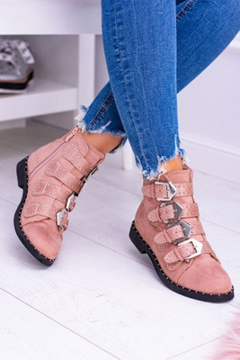 Lu Boo Pink Virginia Rock Star Boots Rivet Buckles Suede