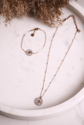 Vėrinys su dobilais ir kubiniais cirkoniais rožinio aukso sėkme