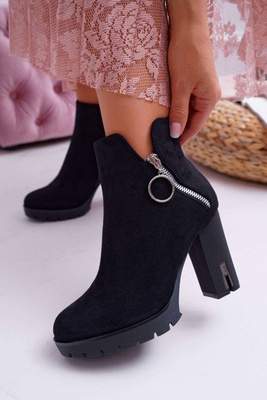 Moteriški batai su užtrauktuku Dekoratyviniai zomšiniai juodi Imagine