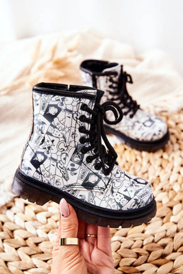 Šilti vaikiški batai su užtrauktuku juodos ir baltos spalvos antgaliu
