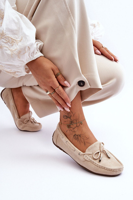 Moteriški stilingi zomšiniai mokasinai smėlio spalvos Rabell