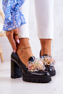 Odiniai glotnūs batai su dekoracija Black Delaver