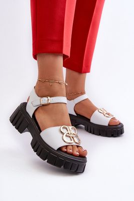 +2Balti moteriški odiniai sandalai su aukso apdaila Vinceza 7910