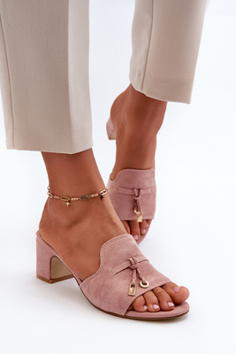 Rožinės Jemenna spalvos moteriški sandalai su aukštu kulnu