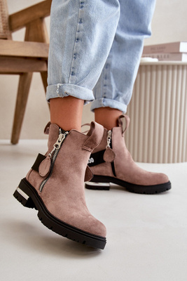 Šilti moteriški kulkšnies batai su užtrauktuku Tamsiai smėlio spalvos Calvaro