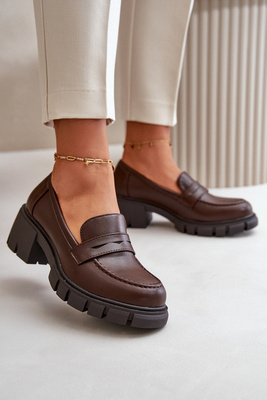 Moteriški batai žemakulniais iš ekologiškos odos tamsiai rudos spalvos menloa