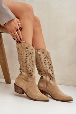 Suede Batai Su Perforuota Šlaunika Bežiniai Zazoo 3714