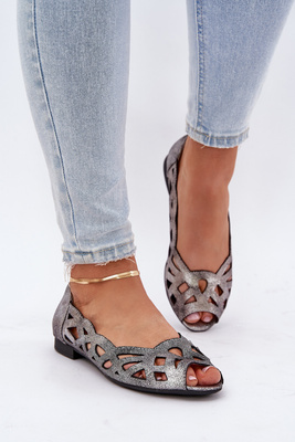 Išgręžtos balerinos su atviromis pirštinėmis sidabrinės Calgis