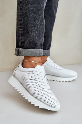 Odiniai Sportiniai Bateliai Ant Platformos Su Blizgučiais D&A LR51-629 Balti