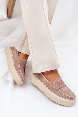 Moteriški zomšiniai mokasinai ant platformos Vinceza 79535 šviesiai rudi