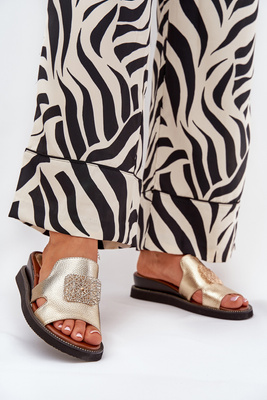 Moteriški Padedami Sandalai Eko Oda Su Dekoracija Aukso Sarela