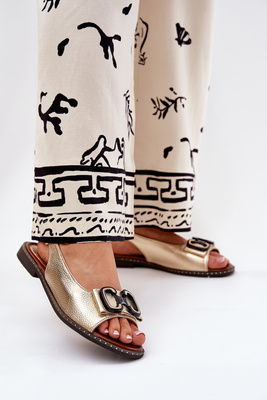 Plokšti Sandalai Su Dekoru Eko Oda Auksinė Lilria