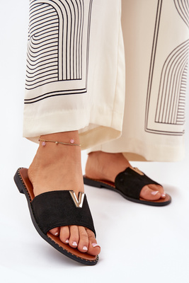 Moteriški Lygūs Sandalai Su Dekoratyviniais Elementais Juodi Saliena