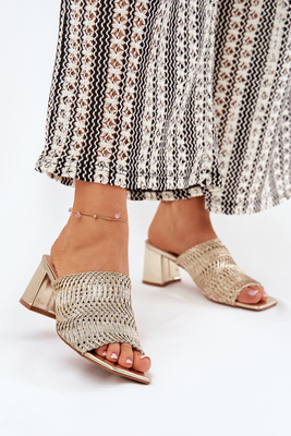 Moteriški Šlepetės Su Pintinėmis Ant Kulno Auksinės Ciariloria