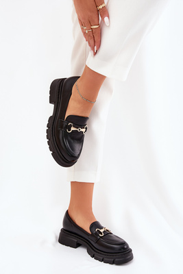 Moteriški Mokasinai Su Auksiniu Akcentu Eko Oda Juodi Gemitha