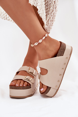 Moteriški Sandalai Su Sagtimis Ant Masyvios Platformos Bežiniai Odisene