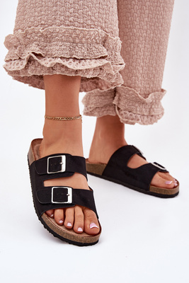 Moteriški Kamštiniai Platforminiai Sandalai Su Sagtimis Juodi Evisolla