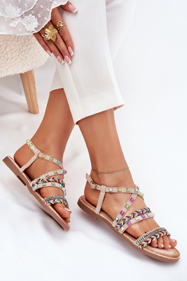 Moteriški Šlepetės Su Dekoru Ir Pintomis Diržais Bežinės Delyra