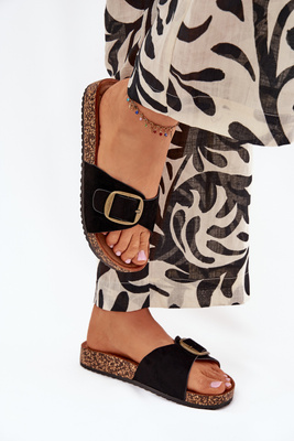 Moteriški Sandalai Su Užsegimu Ant Korko Platformos Juodi Zavira