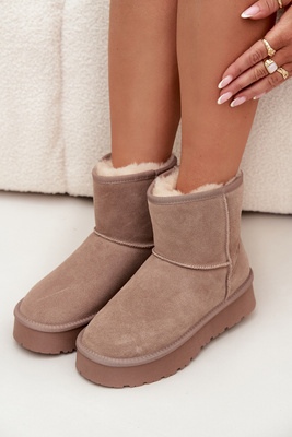 Moteriški sniego batai iš natūralaus velveto ant platformos smėlinės Privine