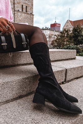 Moteriški batai su dekoracija ant bloko ekologiško zomšos Juodi Ivanna